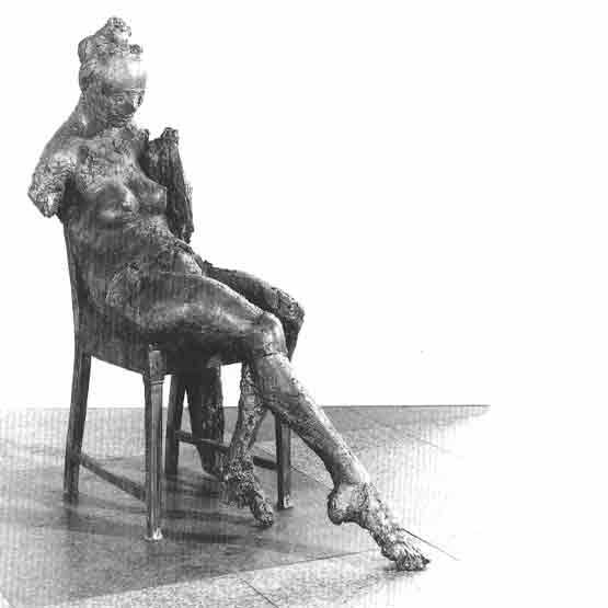 Ein entscheidendes Merkmal von Dunkels Figurenwelt ist ihre bezwingende Kreatürlichkeit. Frauen und Männer treten beinahe ausnahmslos ohne jede Kostümierung in ihrer Nacktheit und Geschlechtlichkeit in Erscheinung. So gewinnen sie Ursprünglichkeit und Vitalität, obwohl ihr Körper nicht als Organon aufgefaßt, nicht leibhaftig funktionsbereit, sondern mehr oder weniger torsiert ist. Individuelle Züge sind sublimiert zur menschlichen Figur. Diese erlaubt uns aber kein Wir-Gefühl, im Gegenteil, irritierende Fremdheit und Distanz rufen den Eindruck von Unberührbarkeit hervor.