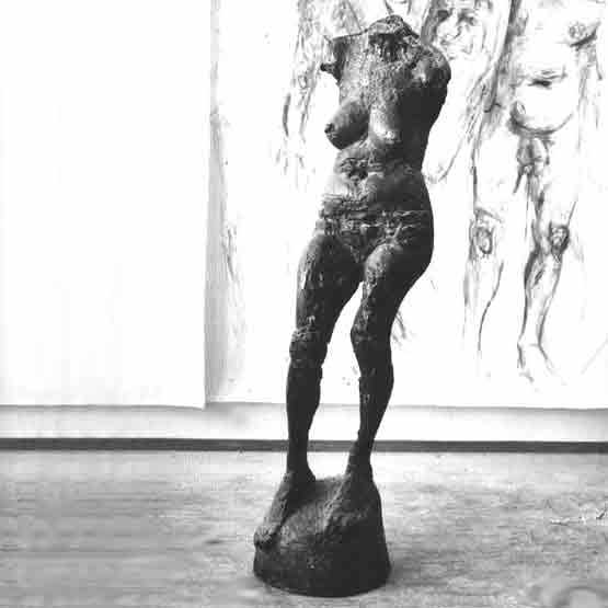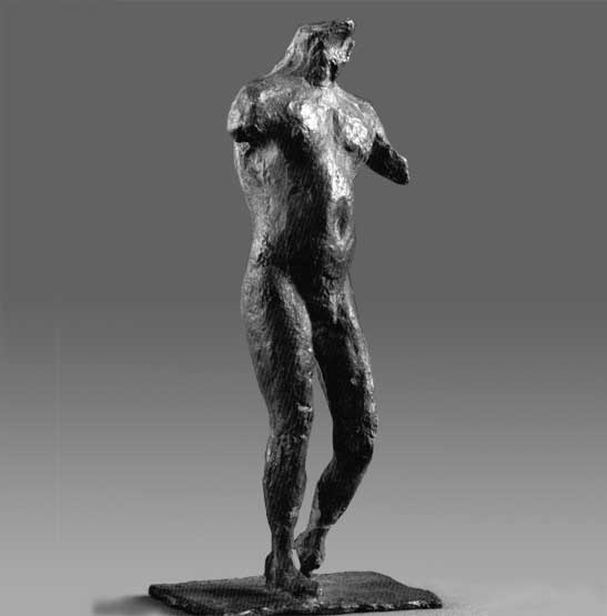 Joachim Dunkel liebte das Statuettenformat, jene Größe, die nicht auf Überwältigung aus der Distanz, sondern auf die eingehende, die ganz persönliche, private Betrachtung aus nächster Nähe zielt. Tatsächlich wurde die Kleinbronze vom Künstler nie als Vorstudie oder als erster Schritt zu einer Ausführung in größerem Format aufgefaßt. Auch die lebensgroßen Figuren zeigen die Intimität der Kleinplastik.