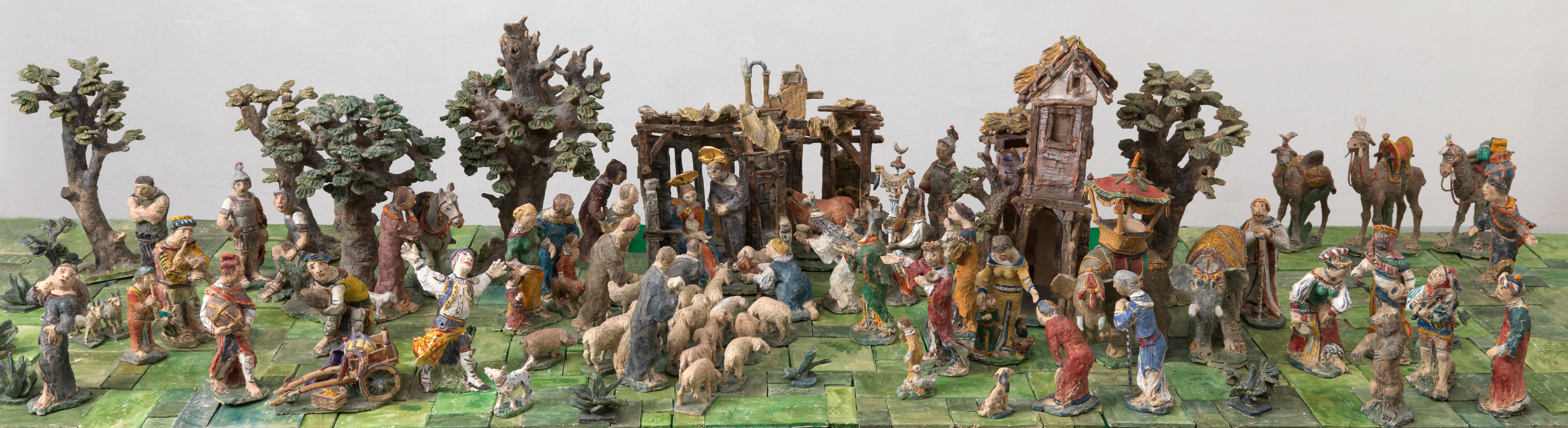 Das Ensemble in Terrakotta, farbig gefasst, besteht aus weit über 100 Teilen.